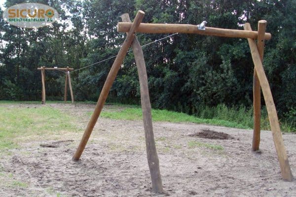 De Robinia hardhouten kabelbaan zonder plateau is leverbaar in verschillende lengtes, waarbij de minimaal geadviseerde lengte 20m betreft. Dit om te zorgen dat er voldoende snelheid behaald kan worden. De kabelbaan heeft een natuurlijke uitstraling en is uitermate geschikt voor op speelveldjes, in bossen of overige speellocaties. Door snelheid en slingeren te combineren is het een ideaal toestel voor kinderen om hun grenzen te leren kennen, deze te verleggen en daarbij angsten te overwinnen. Maar natuurlijk is het simpelweg ook gewoon leuk! Het toestel is ook leverbaar in uitvoering met aan één zijde een opstapplateau.