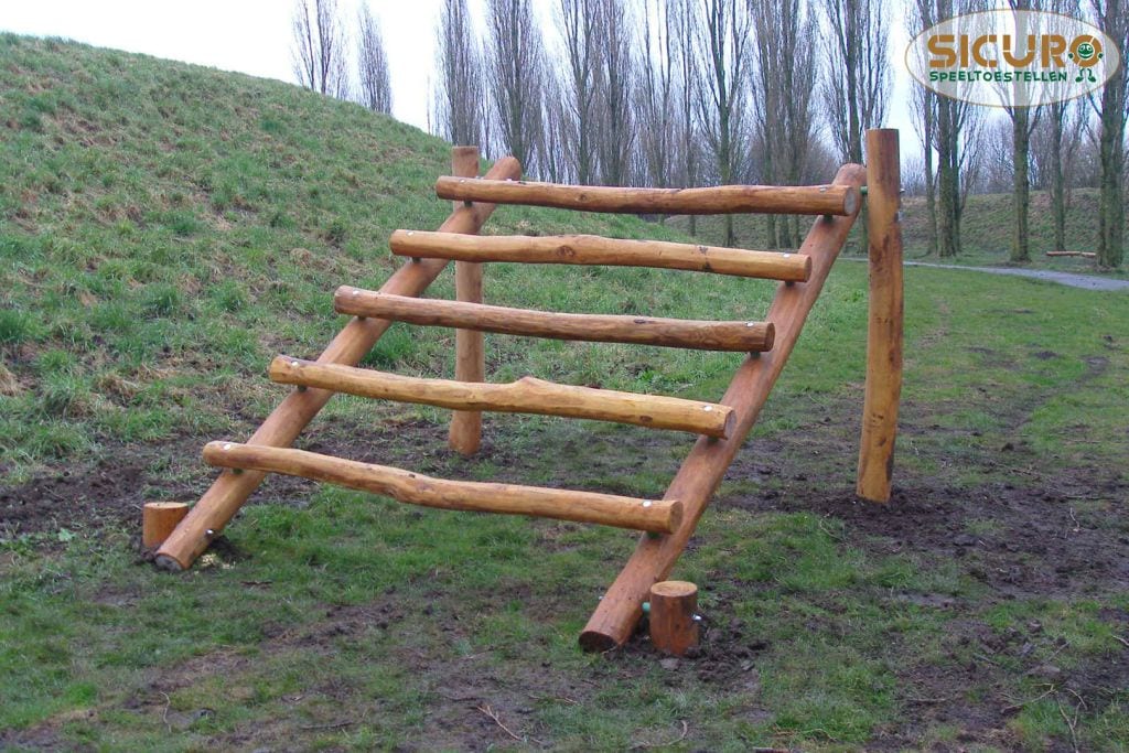 Het klautertoestel is in weze het zelfde als het hellingrek alleen dan in een trimparcours toegepast met infobord. Het toestel is zowel bruikbaar als conventioneel speeltoestel, trim- of bootcamp toestel. Ideaal voor het trainen van coordinatie en snelheid. De uitleg van het toestel en de niveau’s zijn op het infobord uitgelegd. De paal van het infobord is ook leverbaar in robinia uitvoering. Wanneer een infobord gewenst is, dient men dit bij de aanvraag aan te geven.
