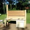 Robinia hardhouten zandspeelkeukentje voor de echte koekenbakkers, uitgevoerd met HPL werkblad en voorpaneel. Het toestel is voorzien van een zandtakel, zand swing en decoratieve kookpitjes, oven en knoppen. Een erg leuk toestel voor sensorisch spel en rollenspel, vooral voor de allerkleinste. Ook leverbaar met Robinia werkblad en voorpaneel. Het toestel is mits bereikbaar geplaatst ook geschikt voor mindervalide.